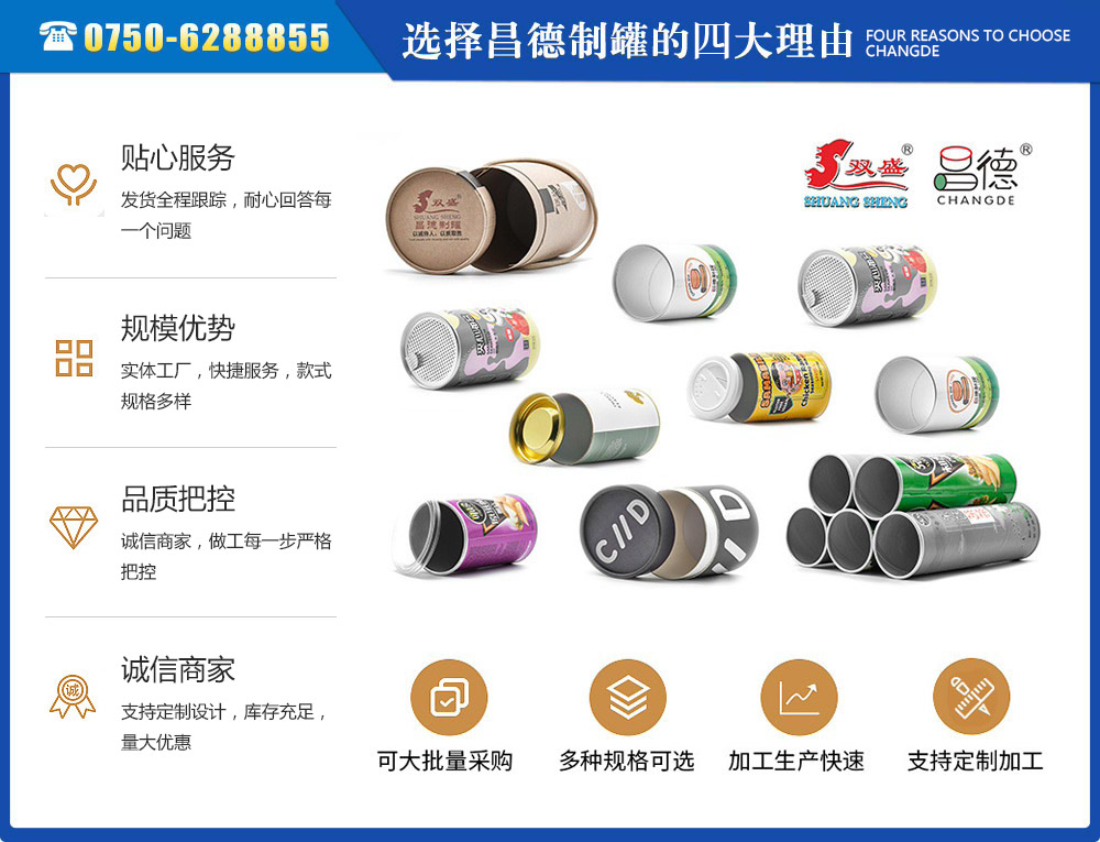 江門市昌德五金制罐有限公司位于江門與珠海臨近的古井鎮(zhèn),是專業(yè)生產(chǎn)紙罐,食品紙罐系列的包裝研制、開發(fā)、生產(chǎn)的廠家,從建廠至今,公司本著“重合同、守信用”的原則,以“質(zhì)量求生存,客戶至上”為經(jīng)營(yíng)宗旨,贏得了很好的信譽(yù),公司擁有國內(nèi)一流的技術(shù)設(shè)備和多年的生產(chǎn)經(jīng)驗(yàn)。年產(chǎn)休閑食品紙筒500萬左右,紙筒2000萬支左右,易拉罐,食品罐等1000萬左右,產(chǎn)品銷往各地。我廠是以高科技為先導(dǎo),以技術(shù)創(chuàng)新整合為手段,成為迅速崛起的專業(yè)性包裝企業(yè),憑借艱苦的創(chuàng)業(yè)精神和集體智慧,采用規(guī)范的現(xiàn)代企業(yè)運(yùn)行機(jī)制,形成具有鮮明特色的企業(yè)文化模式和管理...